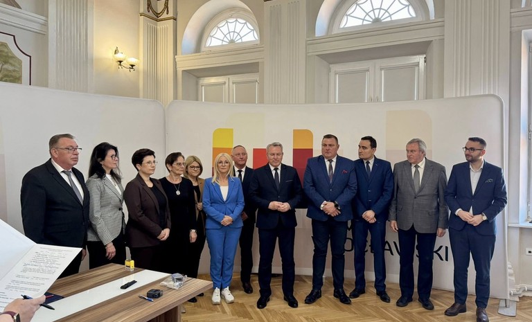 W Starostwie Powiatowym we Włocławku odbyła się dziś uroczystość podpisania umów na dofinansowanie z programów rządowych Koalicji 15 października zadań inwestycyjnych realizowanych w powiecie włocławskim.