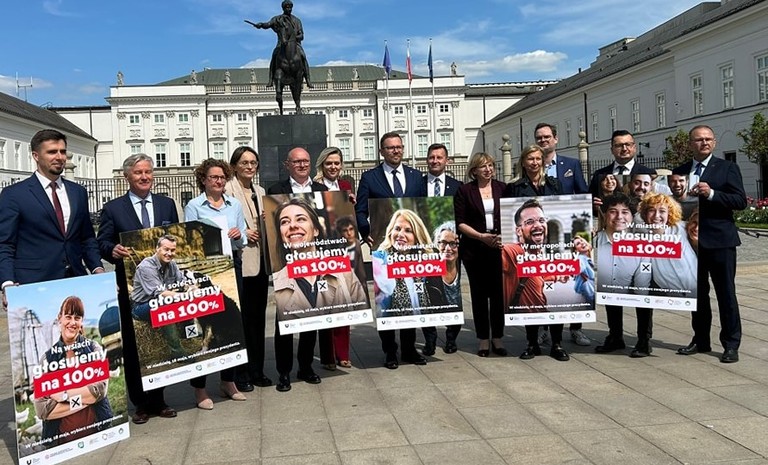 „Głosujemy na 100%” – to hasło ogólnopolskiej inicjatywy samorządów, której celem jest mobilizacja Polek i Polaków do udziału w wyborach prezydenckich.