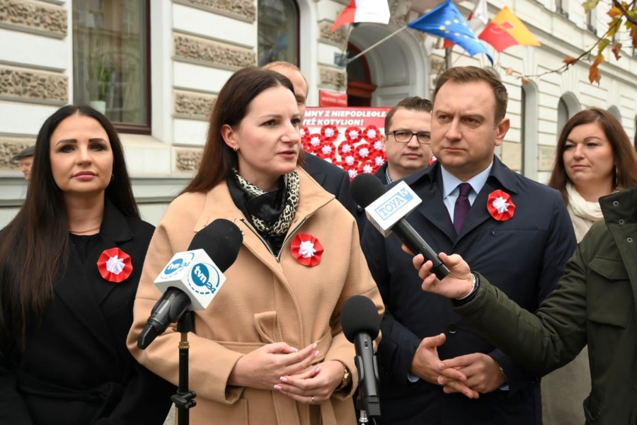 "Jutro Święto Niepodległości. 104 lata, od kiedy Polska jest niepodległym krajem. 104 lata, które trzeba wyjątkowo pielęgnować, szczególnie w roku, w którym za wschodnią granicą wybuchła wojna. To powinno nam dać bardzo wiele do myślenia, że niepodległość i suwerenność, nie są dane raz na zawsze. Dlatego my jako Lewica, dzisiaj symbolicznie w przeddzień Święta Niepodległości, będziemy mieszkańcom rozdawać kotyliony i będziemy zachęcać i namawiać do tego, aby ten jutrzejszy dzień po prostu spędzić tak, jak lubimy, tak, jak chcemy. Starać się nie dzielić, bo Polska jest jedna, mimo tego, że są różne poglądy, ale Polska jest jedna. I wszystkim, mam taką nadzieję, że wszystkim, siłom politycznym zależy na tym, aby ta Polska była bezpieczna, żeby ta Polska i w tej Polsce obywatele czuli się bezpiecznie" - podkreślał poseł Tomasz Trela.
