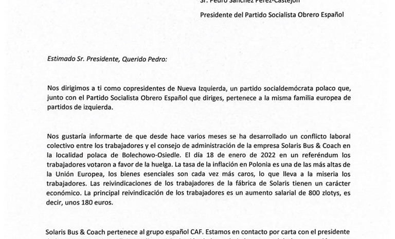 Współprzewodniczący Nowej Lewicy Włodzimierz Czarzasty i Robert Biedroń w liście do premiera Hiszpanii Pedro Sancheza z tamtejszej partii socjaldemokratycznej zaapelowali o pomoc przy rozwiązaniu konfliktu ...